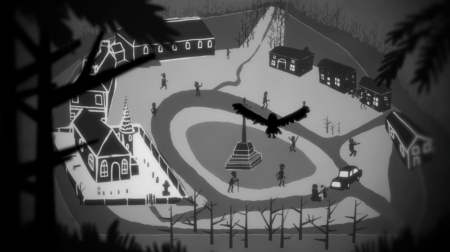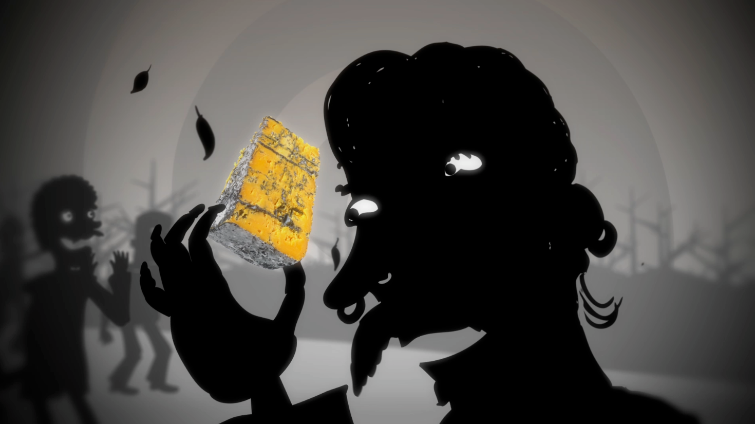 Intricate Silhouettes: We designed a cast of "village folk" with a penchant for artisanal cheese, focusing on expressive movement and detailed outlines to convey personality without the need for full-colour rendering.